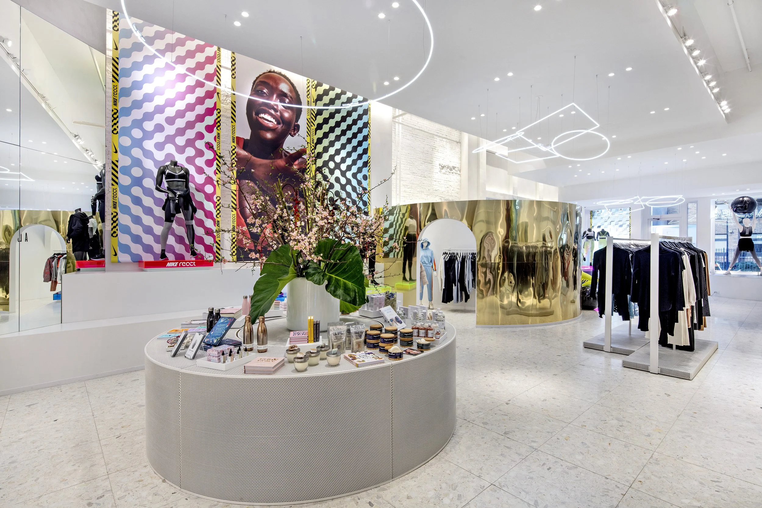 HUXHUX Design Inc. led the effort to reconceive Bandier’s retail experience. Through extensive design studies and fixture development we orchestrate a hyper-programmed store wherein shoppers can experience everything from shopping evergreen collections to discovering capsule collections to interacting with brand activations and shop-in-shops. We also designed a full cafe in the store so that the brand could activate this feature with rotating wellness brand partnerships. Bandier customers thereby gain exposure to various wellness innovators over time as they return to the store. The umbrella nature of the brand’s interest in active wellness gave us a unique opportunity to design a rich and layered retail environment in which everything, and we mean everything, is custom to this store.