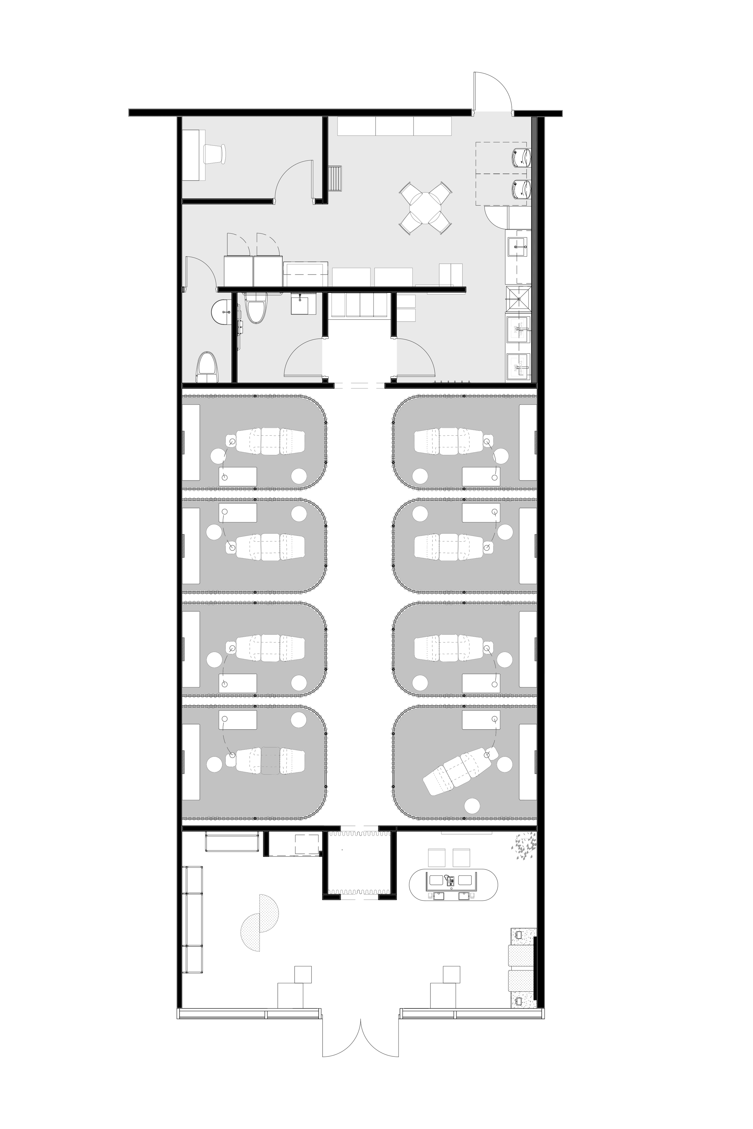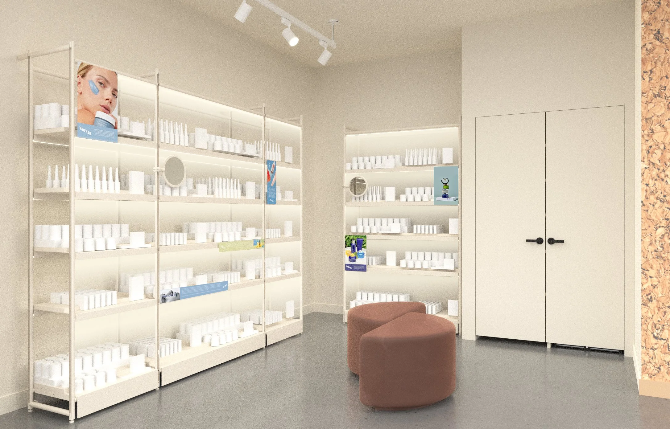 With franchising comes tighter budgets, so we approached the project with a design-driven, cost-conscious mindset. Instead of limiting the creative process, this challenge allowed us to distill the brand into a cleaner, more scalable expression. We mapped the guest journey from street to treatment room, shaping intuitive transitions: a bright, welcoming retail zone for pre- and post-treatment engagement, a transformative threshold cladded with mirror for a brief reset pause, and private treatment areas defined by soft drapery, warm light, and a restorative material palette.